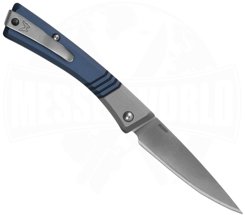 Der Griff des Successor besteht aus anodisiertem Aluminium in elegantem Crater Blue mit Ash-Gray-Akzenten. Die feine Oberflächenstruktur sorgt für guten Grip bei geringem Gewicht. Die Klinge im Spear-Point-Design verfügt über ein Satin-Finish und einen zuverlässigen Schneidwinkel – ideal für präzise Alltagsaufgaben.