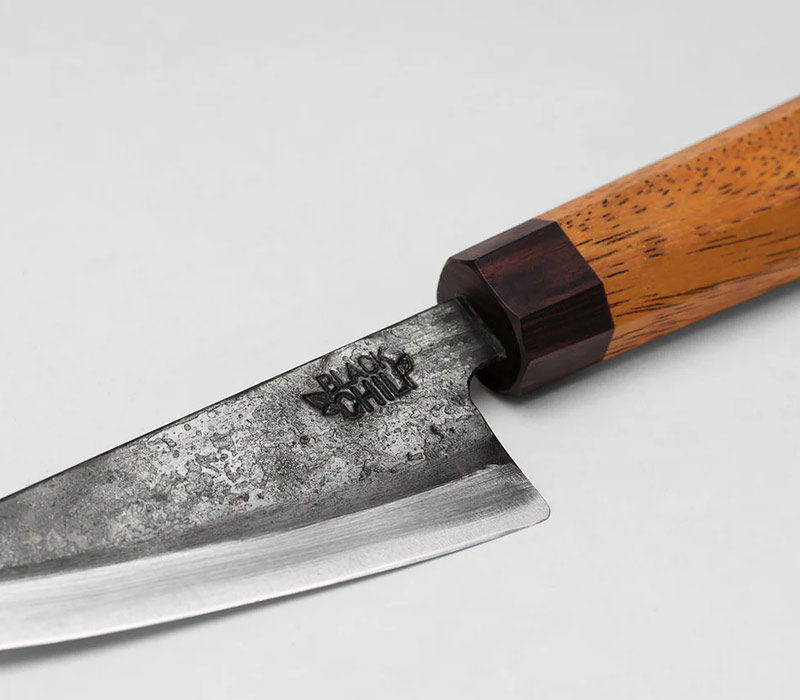 Black Chili setzt auf handgeschmiedeten Carbonstahl, der zwar etwas pflegeaufwendiger ist, als der herkömmliche Edelstahl - dafür aber auch um einiges schärfer. Die Klingen werden in Vietnam handgeschmiedet und auch die Griffstücke werden in aufwendiger Handarbeit gefertigt. Hier erzählt jedes Messer noch seine eigne Geschichte!