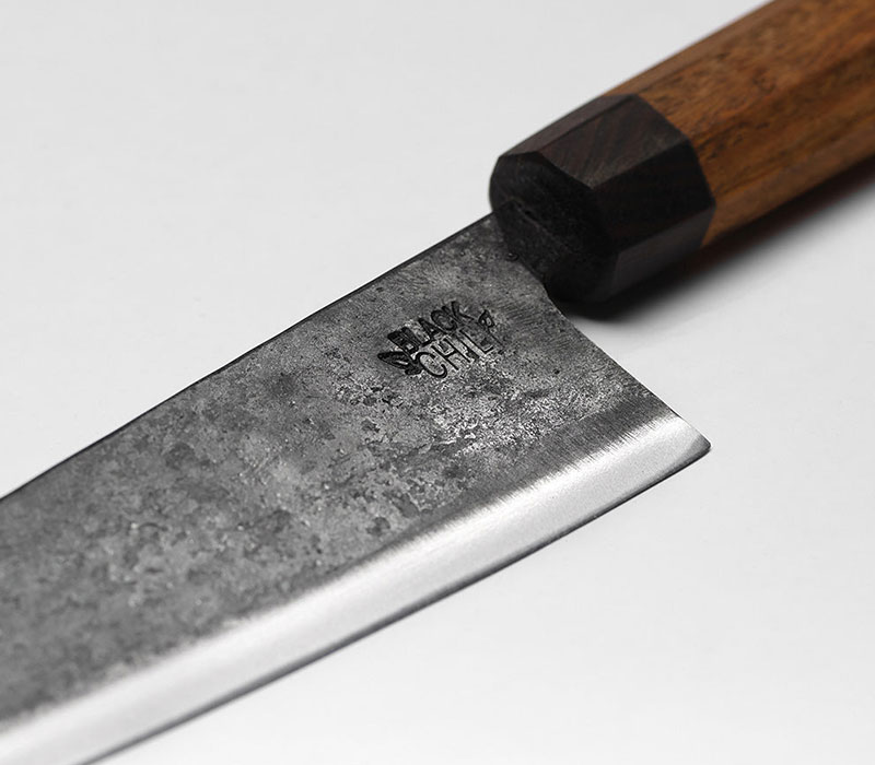 Black Chili setzt auf handgeschmiedeten Carbonstahl, der zwar etwas pflegeaufwendiger ist, als der herkömmliche Edelstahl - dafür aber auch um einiges schärfer. Die Klingen werden in Vietnam handgeschmiedet und auch die Griffstücke werden in aufwendiger Handarbeit gefertigt. Hier erzählt jedes Messer noch seine eigne Geschichte!