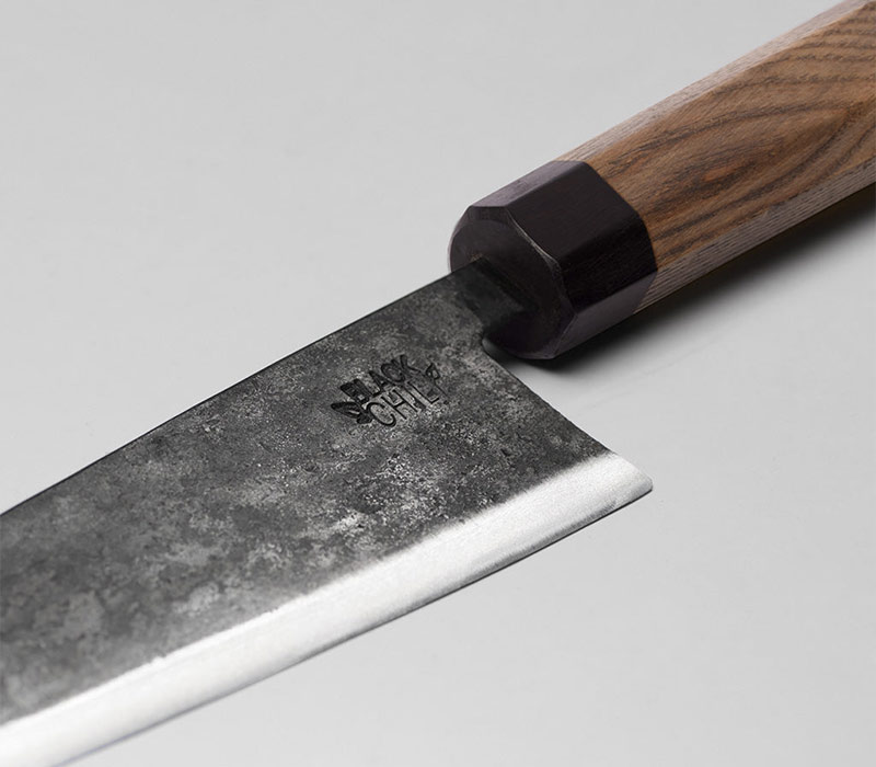 Black Chili setzt auf handgeschmiedeten Carbonstahl, der zwar etwas pflegeaufwendiger ist, als der herkömmliche Edelstahl - dafür aber auch um einiges schärfer. Die Klingen werden in Vietnam handgeschmiedet und auch die Griffstücke werden in aufwendiger Handarbeit gefertigt. Hier erzählt jedes Messer noch seine eigne Geschichte!