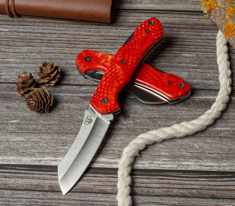 - Elegantes Taschenmesser mit poliertem Juma Red Griff