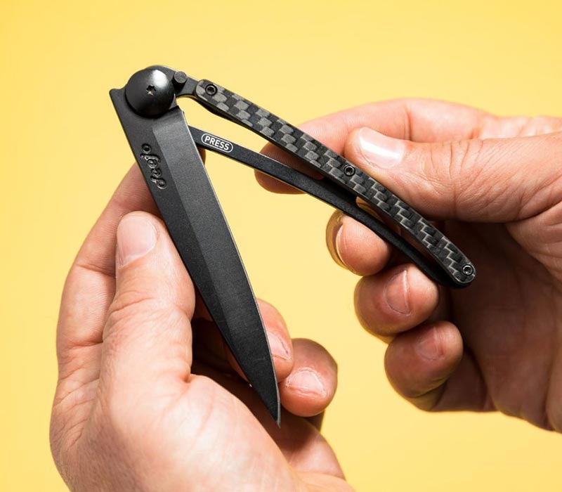Die 37g-Serie von Deejo ist ein international anerkanntes Statement für ultraleichte und designorientierte Taschenmesser. Mit dem Classic Black Kohlefaser setzt Deejo auf reine Funktion, moderne Materialwahl und reduziertes Design – ein Messer für alle, die weniger Schnickschnack und mehr Performance wollen.