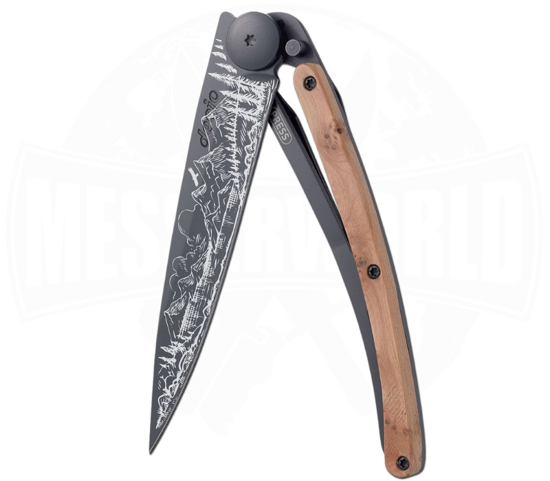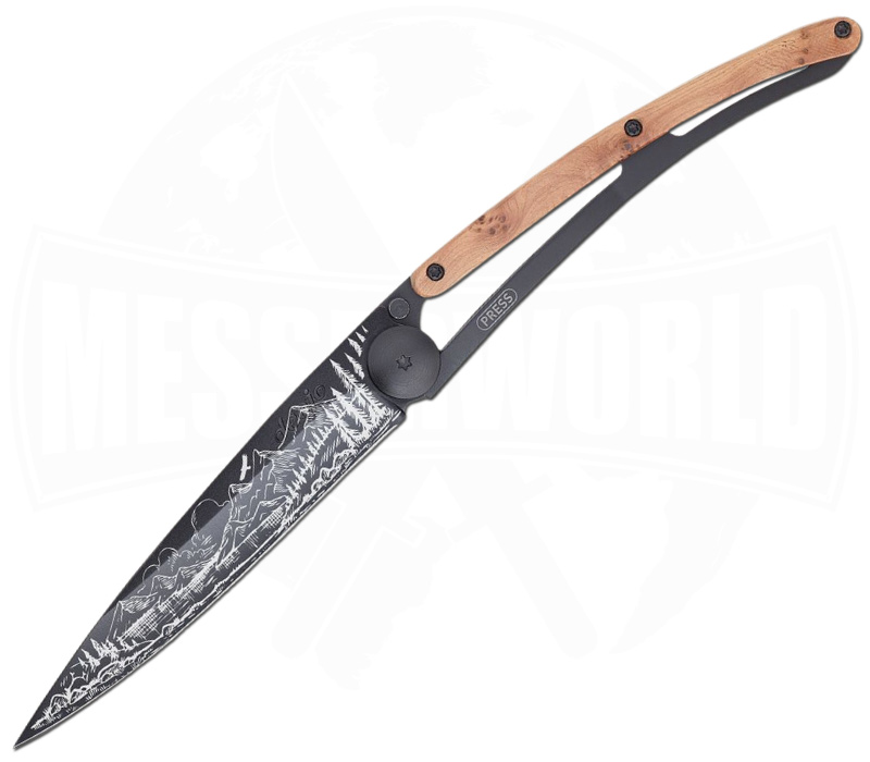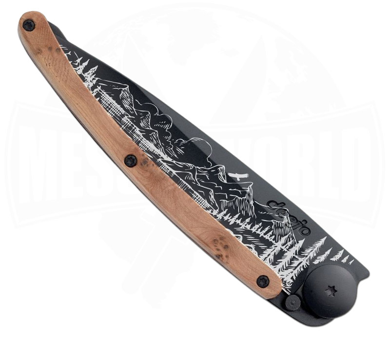 Deejo 37g Tattoo Berg Wacholderholz – ultraleichtes EDC‑Taschenmesser mit Berg‑Gravur