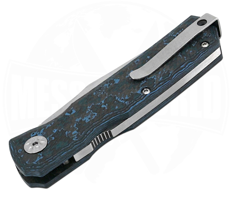 Der Griff aus FatCarbon® Arctic Blue verbindet Leichtigkeit mit exklusiver Optik. Das einzigartige Carbonmuster schimmert je nach Lichteinfall in kühlen Blau- und Silbertönen – ein echter Hingucker, der Handwerkskunst und Hightech vereint. Die präzise CNC-Struktur sorgt für sicheren Halt und verleiht dem Messer seine unverwechselbare Tiefe.
