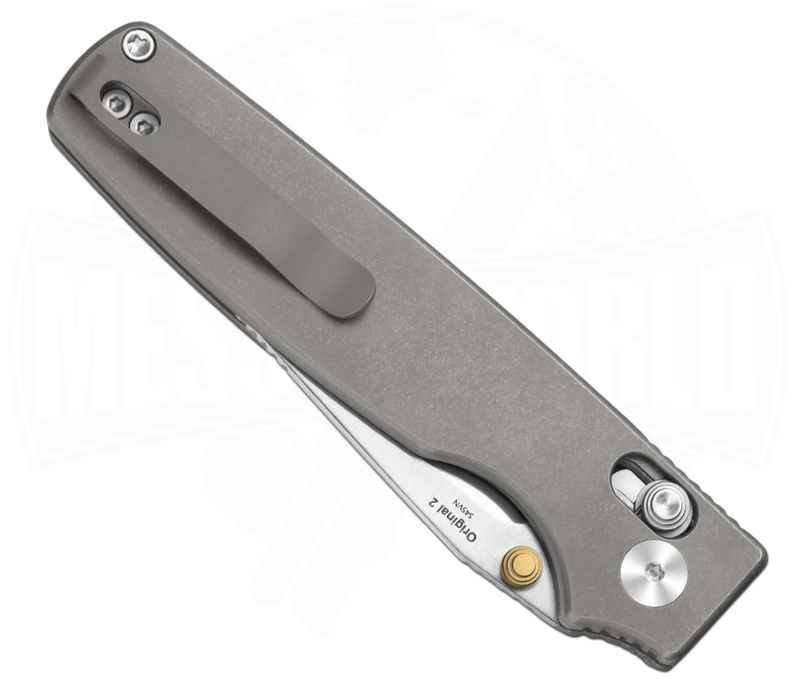 Der Griff aus grauem Titan verleiht dem Original 2 nicht nur eine edle Optik, sondern auch unvergleichliche Stabilität bei minimalem Gewicht. Das kühle Metall fühlt sich angenehm an und vermittelt Qualität bei jeder Bewegung. In Kombination mit der klaren Linienführung entsteht ein Messer, das moderne Ästhetik und Funktion perfekt vereint.