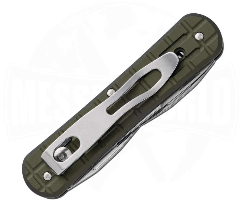 Der dunkelgrüne Aluminiumgriff im Grenade Pattern sorgt nicht nur für einen coolen Look, sondern auch für richtig guten Grip. Das Muster liegt sicher in der Hand, egal ob du drinnen tüftelst oder draußen im Gelände werkelst. Robust, stylisch und mit nur 42 g Gewicht – das Vulpis trägt sich so leicht wie dein Lieblingsfeuerzeug.
