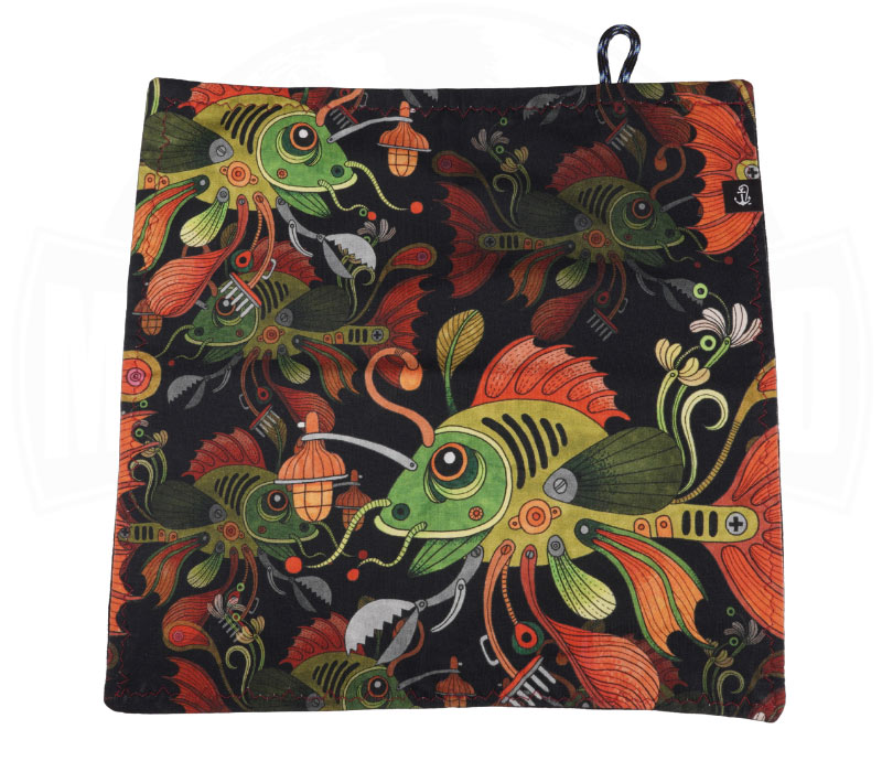 Mit dem Hafenbagaluten Customs EDC Hank Tiefseeschrecken tauchst du direkt in die dunkelsten Abgründe der Meere ein. Auf der Vorderseite erwarten dich furchteinflößende, abstrakte Tiefseefische, die selbst erfahrenen Abenteurern einen Schauer über den Rücken jagen. Durch den schwarzen Hintergrund wirken die Kreaturen noch bedrohlicher und lassen das Hank zu einem echten Blickfang im EDC-Setup werden.