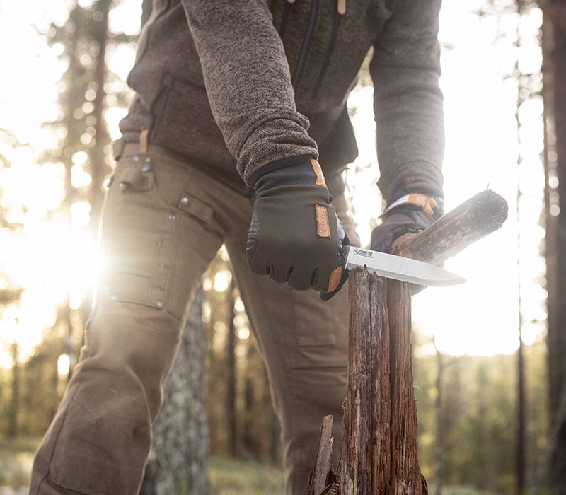 Das No.14 SFK wurde für Situationen entwickelt, in denen ein Messer nicht nur ein Werkzeug, sondern eine Lebensversicherung sein kann. Die 14 cm lange, kraftvolle Klinge bietet genug Gewicht und Stabilität für harte Arbeiten wie Chopping oder Spalten von Brennholz. Gleichzeitig liefert der skandinavische Schliff die feine Kontrolle, die beim Carving und detailgenauen Arbeiten benötigt wird.
