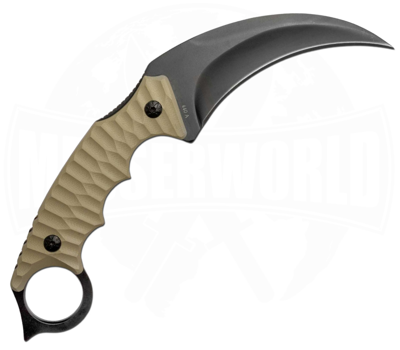 Die 10,2 cm lange Klinge aus 440A-Edelstahl wurde mit einer widerstandsfähigen Desert-Tan-Beschichtung versehen. Dadurch wird nicht nur die Korrosionsbeständigkeit erhöht, sondern auch Reflexionen werden reduziert. Mit einer Klingenstärke von satten 5 mm ist das Spike Karambit auf Belastbarkeit ausgelegt und bleibt auch unter Druck zuverlässig kontrollierbar.