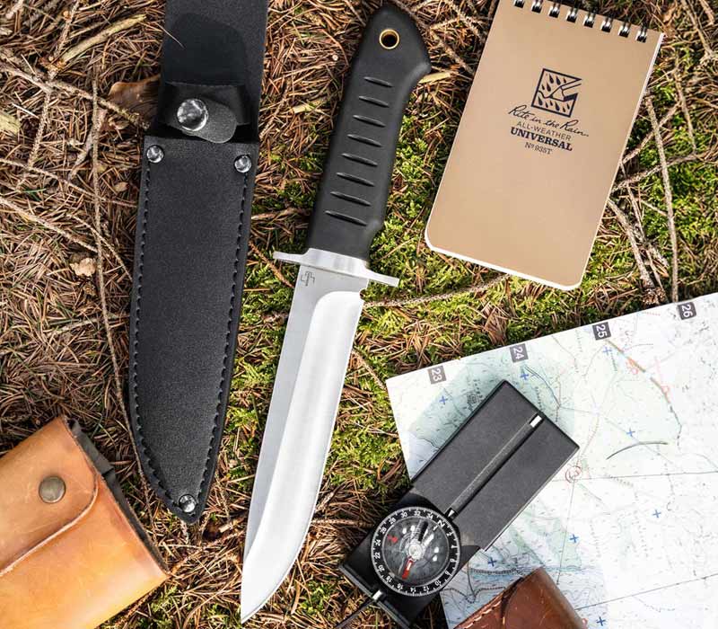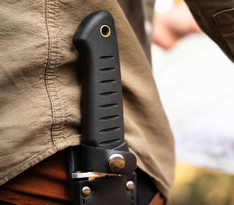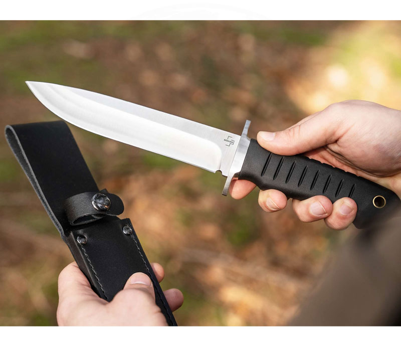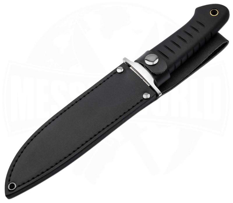 Geliefert wird das Messer mit einer hochwertigen Lederscheide, wodurch ein sicherer Transport und schneller Zugriff gewährleistet werden.