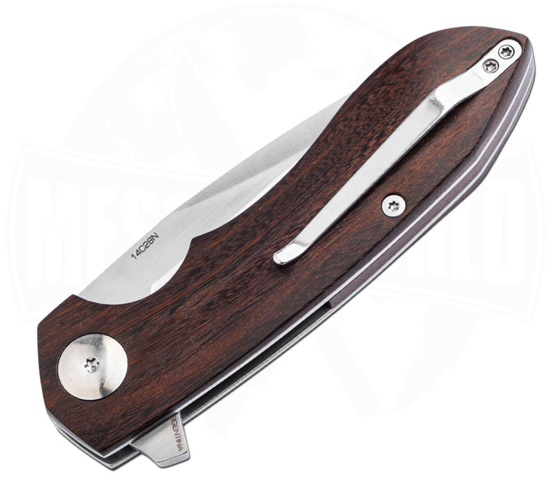 Die 8 cm lange Droppoint-Klinge wird aus widerstandsfähigem 14C28N Stahl gefertigt. Dadurch wird eine hohe Schnitthaltigkeit erreicht, während gleichzeitig eine gute Korrosionsbeständigkeit gewährleistet bleibt.