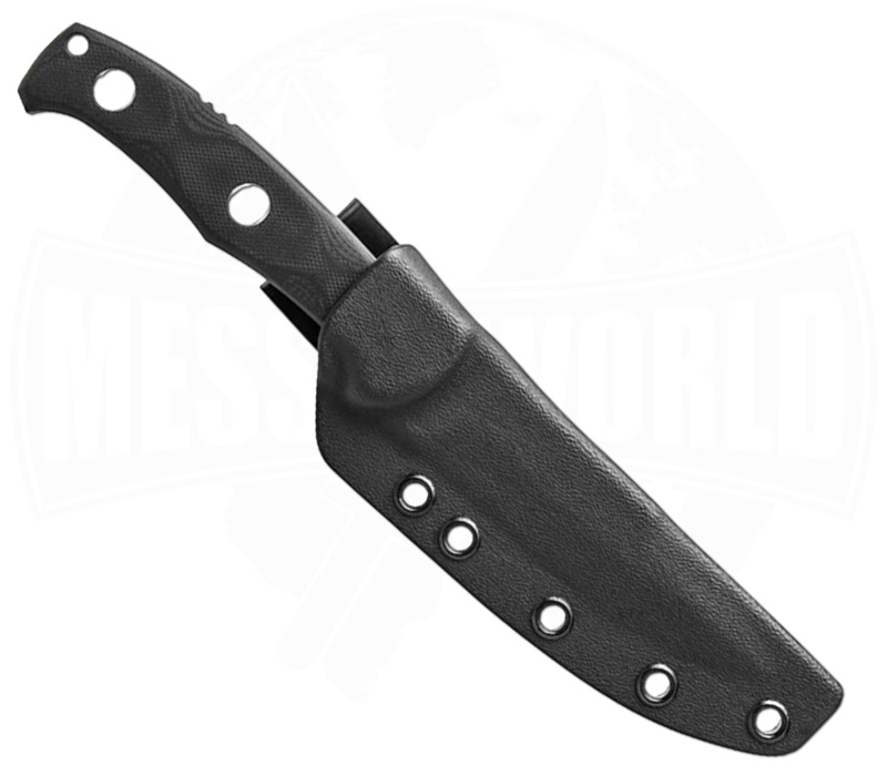 Die robuste schwarze Kydex-Scheide mit rotierendem Federstahl-Clip ermöglicht vielseitige Trageoptionen. Ob am Gürtel, an taktischer Ausrüstung oder im Outdoor-Setup – Retention und Zugriff sind auf professionelle Anforderungen ausgelegt.