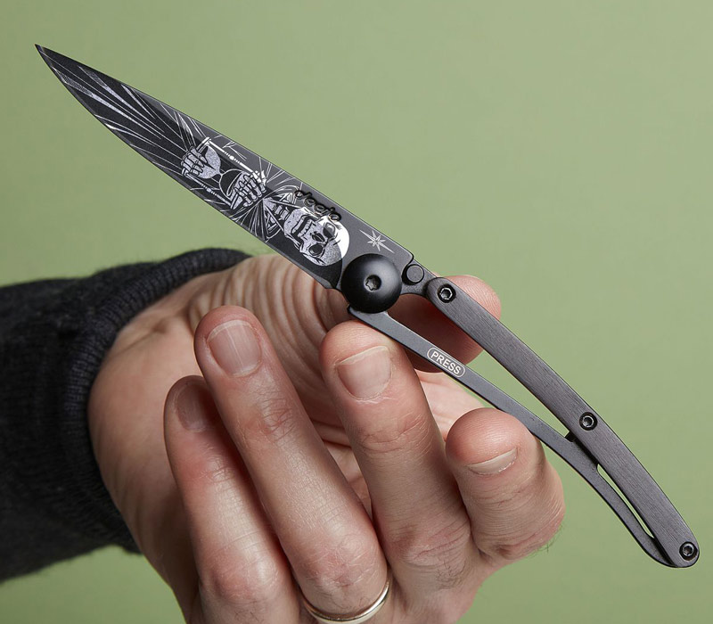 Deejo begreift Messer als Lifestyle-Objekte, die man gerne bei sich trägt. Die Marke arbeitet regelmäßig an besonderen Editionen und Kooperationen – von kunstvollen Tattoo-Kollektionen mit renommierten Künstlern bis hin zu limitierten Editionen zu besonderen Anlässen oder Events.