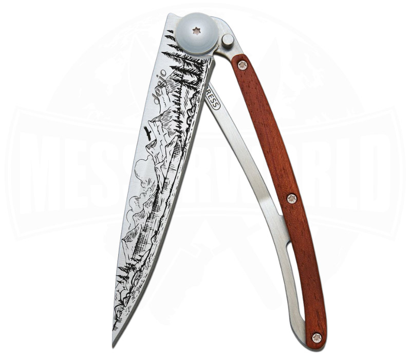 Das Deejo 37g Tattoo Berg Korallenholz ist wie ein kleiner Höhenflug für die Hosentasche. Die fein gravierte Berglandschaft auf der Klinge steht für Freiheit, Weite und den Moment, wenn du oben am Gipfel stehst und einfach nur durchatmest.