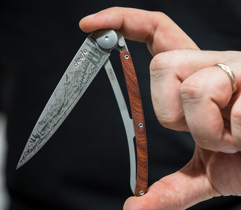 Deejo wurde 2010 von Stéphane Lebeau entworfen und aufgebaut, der ein ultraleichtes Taschenmesser schaffen wollte, das sich mühelos im Alltag trägt, ohne Kompromisse bei Schneidleistung oder Ästhetik einzugehen. Später ergänzt Luc Foin, ein langjähriger Freund und kreativer Partner, die Marke mit personalisierten Design- und Emotionskonzepten.