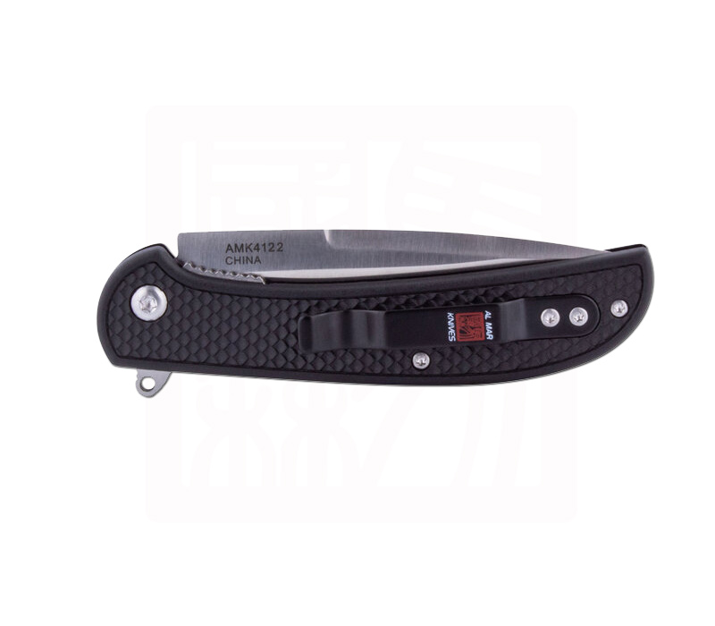 Das kleinste Einsatzmesser der Welt? Das Hawk von AL MAR aus der FRN Ultralight Modellreihe ist ein außergewöhnliches Taschenmesser für den Alltag. Trotz der geringen Größe liegt das Hawk optimal in der Hand und gewährleistet mit seinen rutschfesten FRN-Griffschalen ein sicheres Tragegefühl. Mit einem Gesamtgewicht von nur 36 g ist es vermutlich eines der leichtesten Einsatzmesser der Welt. Die 7 cm lange Klinge ist kugelgelagert und besteht aus 8Cr13MoV Stahl. Sie wird per Flipper geöffnet und mit dem Liner-Lock sicher arretiert. Genau wie die zwei größeren Modelle "Falcon" und "Eagle" verfügt es über einen umsetzbaren Pocket-Clip.