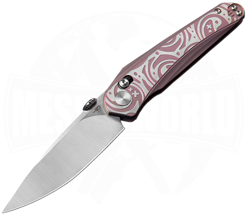 The Bestech Knives Mothus Purple is a masterpiece by designer Grzegorz Grabarski aka Kombou, who has once again teamed up with Bestech to present a knife with a unique design. With a versatile drop-point blade made of satin-finished M390, the Mothus offers outstanding performance. The blade opens with a decorative thumb disc that offers plenty of grip and locks securely with a so-called crossbar lock. However, the Mothus is not only functional, but also a work of art. The titanium handles have decorative swirls and designs of silver on purple anodised titanium that make the knife an eye-catcher. The bevelled edges and thumb ramp ensure ergonomic handling.