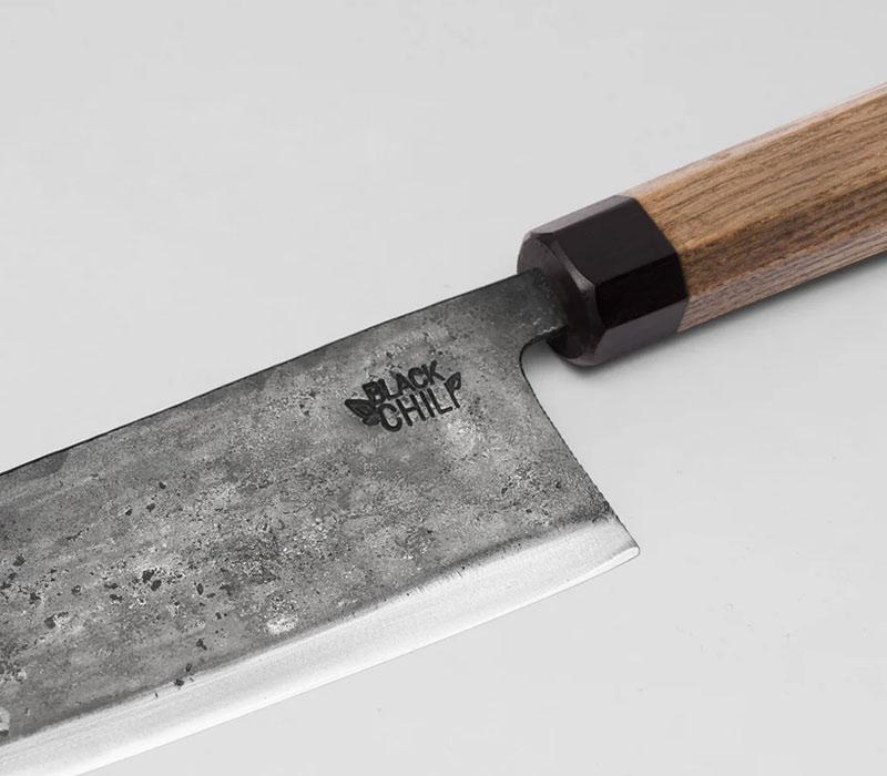Black Chili setzt auf handgeschmiedeten Carbonstahl, der zwar etwas pflegeaufwendiger ist, als der herkömmliche Edelstahl - dafür aber auch um einiges schärfer. Die Klingen werden in Vietnam handgeschmiedet und auch die Griffstücke werden in aufwendiger Handarbeit gefertigt. Hier erzählt jedes Messer noch seine eigne Geschichte!