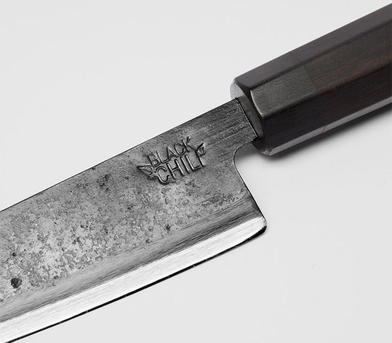 Black Chili setzt auf handgeschmiedeten Carbonstahl, der zwar etwas pflegeaufwendiger ist, als der herkömmliche Edelstahl - dafür aber auch um einiges schärfer. Die Klingen werden in Vietnam handgeschmiedet und auch die Griffstücke werden in aufwendiger Handarbeit gefertigt. Hier erzählt jedes Messer noch seine eigne Geschichte!