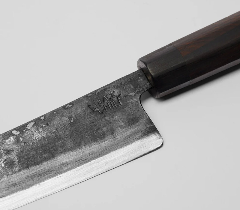 Black Chili setzt auf handgeschmiedeten Carbonstahl, der zwar etwas pflegeaufwendiger ist, als der herkömmliche Edelstahl - dafür aber auch um einiges schärfer. Die Klingen werden in Vietnam handgeschmiedet und auch die Griffstücke werden in aufwendiger Handarbeit gefertigt. Hier erzählt jedes Messer noch seine eigne Geschichte!