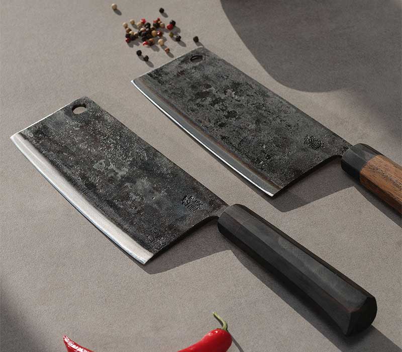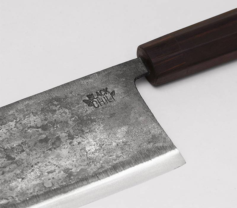 Black Chili setzt auf handgeschmiedeten Carbonstahl, der zwar etwas pflegeaufwendiger ist, als der herkömmliche Edelstahl - dafür aber auch um einiges schärfer. Die Klingen werden in Vietnam handgeschmiedet und auch die Griffstücke werden in aufwendiger Handarbeit gefertigt. Hier erzählt jedes Messer noch seine eigne Geschichte!