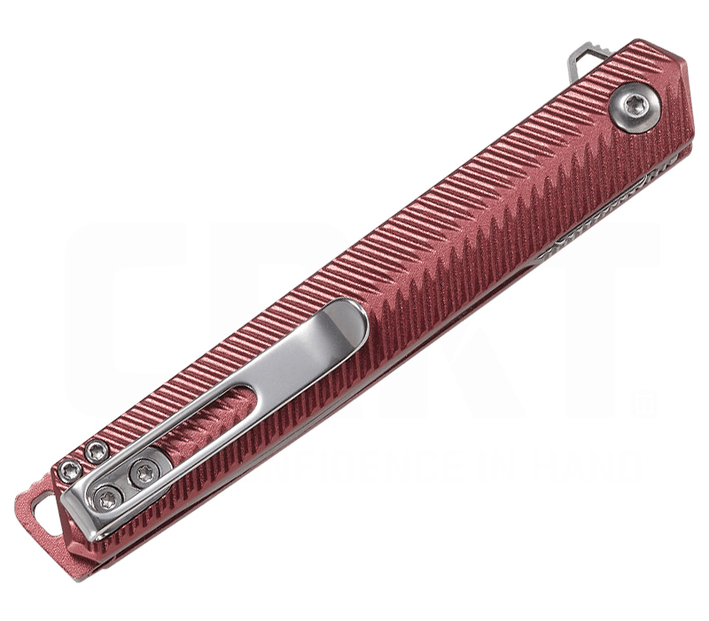 Das Stylus Ken Onion von CRKT überzeugt mit eleganter Form und leicht zu bedienendem IKBS™-Flipper. Das Gentlemanmesser ist mit einer 8,1 cm langen Klinge aus 12C27 Sandvik-Stahl ausgestattet. Sie weist eine Stärke von 3,2 mm auf und wird in geschlossenem Zustand von Aluminium-Griffschalen umgeben sowie von einem Linerlock gesichert. Die rötlichen Griffschalen sind mit einer interessanten Texturierung versehen. Am Ende des Griffes befindet sich eine Fangriemenöse, die dabei hilft, das Gentleman-Messer nach Belieben anzupassen. Der Gürtelclip ermöglicht ein einfaches Mitführen des eleganten EDC-Messers in Tip-Up-Stellung.