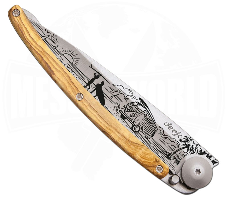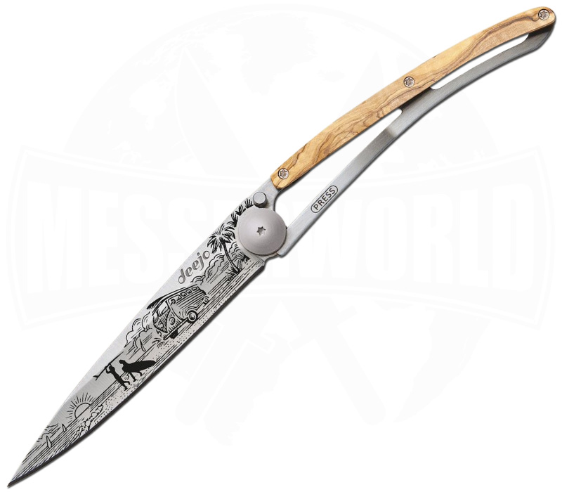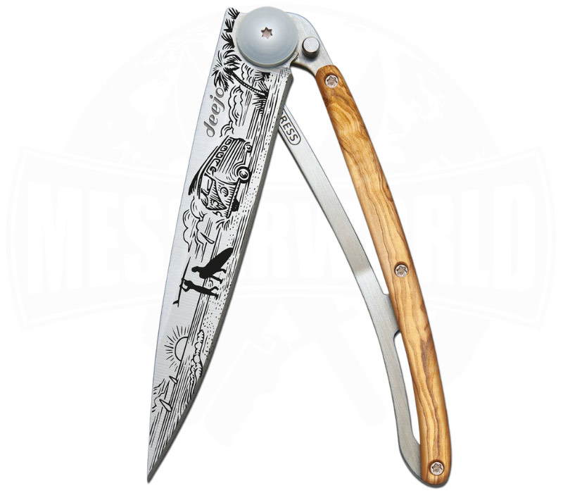 Deejo 37g Tattoo Van Life Olivenholz – ultraleichtes EDC‑Taschenmesser mit Van‑Life‑Gravur