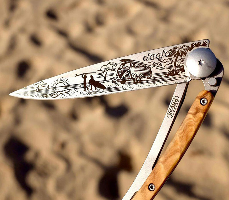 Dieses Deejo‑Modell zeigt, wie French Design mit modernem Abenteuergeist verschmilzt: reduzierte Linien, klassische Ästhetik und Akzentgravur schaffen ein Messer, das ebenso gut in der Stadt wie am Strand, in den Bergen oder mitten auf einer Landstraße funktioniert.