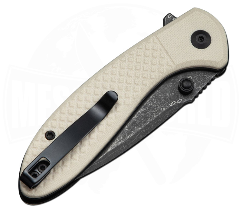 Der 10,5 cm lange Griff aus strapazierfähigem weißem G10 bietet eine ausgezeichnete Haptik und maximale Stabilität. Die subtile Textur sorgt für sicheren Grip, selbst bei Nässe oder längerem Einsatz, und macht das Messer zu einem verlässlichen Begleiter im Alltag.