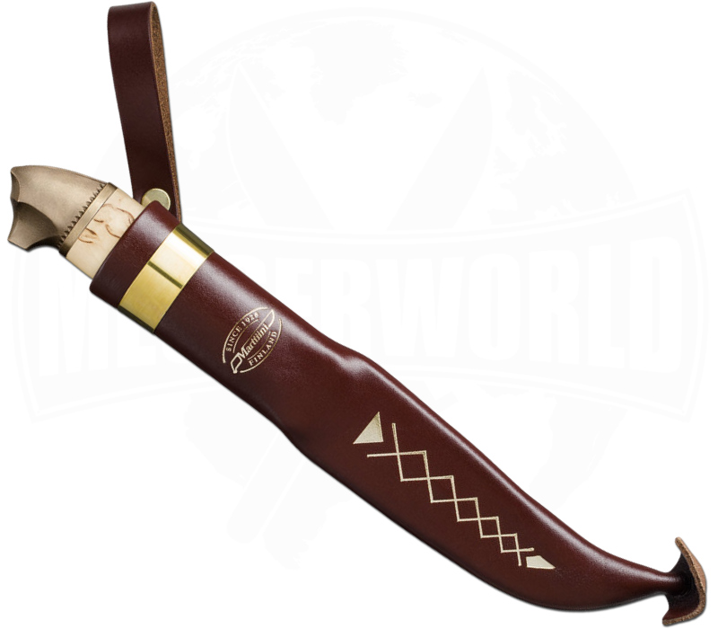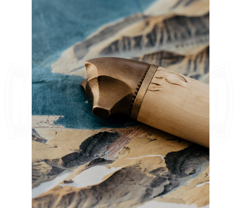 Das Marttiini Bear Knife ist mehr als nur ein Werkzeug – es ist ein Stück finnischer Seele. Sein Griff aus feinster Maserbirke erinnert in Farbe und Struktur an die endlosen Birkenhaine Lapplands. Jede Maserung ist einzigartig, jedes Messer ein Unikat. Der kunstvoll gegossene Bärenkopf aus Bronze am Griffende verleiht dem Messer seine stolze, kraftvolle Ausstrahlung – ein Symbol für den Geist des Nordens.