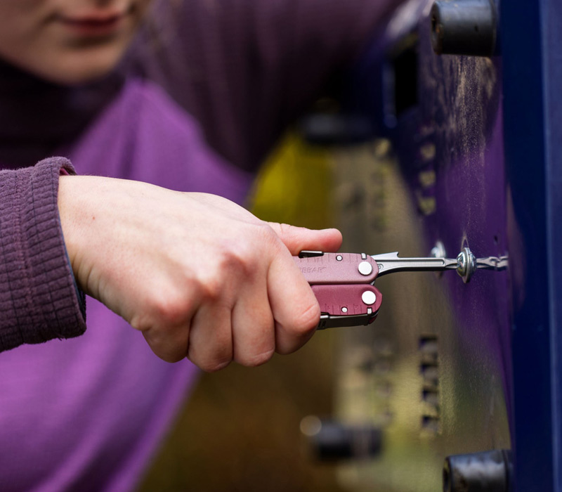 Mach Schluss mit halben Lösungen – hol dir das Leatherman Rebar Heathered Cranberry und bring Farbe und Power in deinen Alltag.