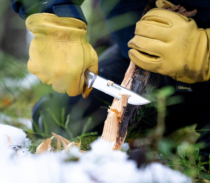 Die Drop-Point-Klinge aus haltbarem 12C27 Sandvik Stahl bietet zuverlässige Schnittleistung, selbst wenn das Wetter rau und das Gelände unnachgiebig wird. Das geringe Gewicht sorgt für ausgezeichnete Kontrolle, während der natürliche Griff aus geöltem Wurzelholz eine angenehme, sichere Haptik vermittelt – selbst bei langen Einsätzen in der Natur.