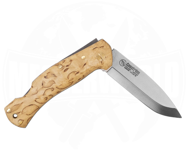 Der ergonomische Griff aus geölter nordischer Maserbirke bietet nicht nur hervorragenden Halt, sondern auch ein natürlich warmes Handgefühl. Die einzigartige Maserung macht jedes Messer zu einem individuellen Einzelstück und verleiht dem Folder seinen typisch skandinavischen Charakter.