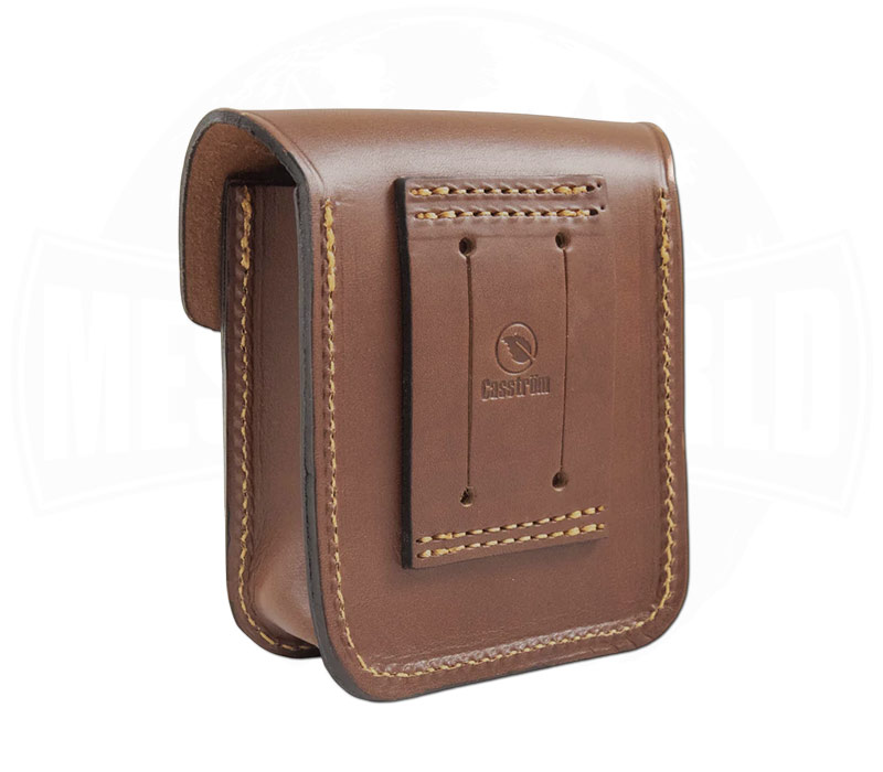- Der 5 cm breite Leder-Gürtelloop befestigt die Tasche sicher an jedem Standardgürtel.