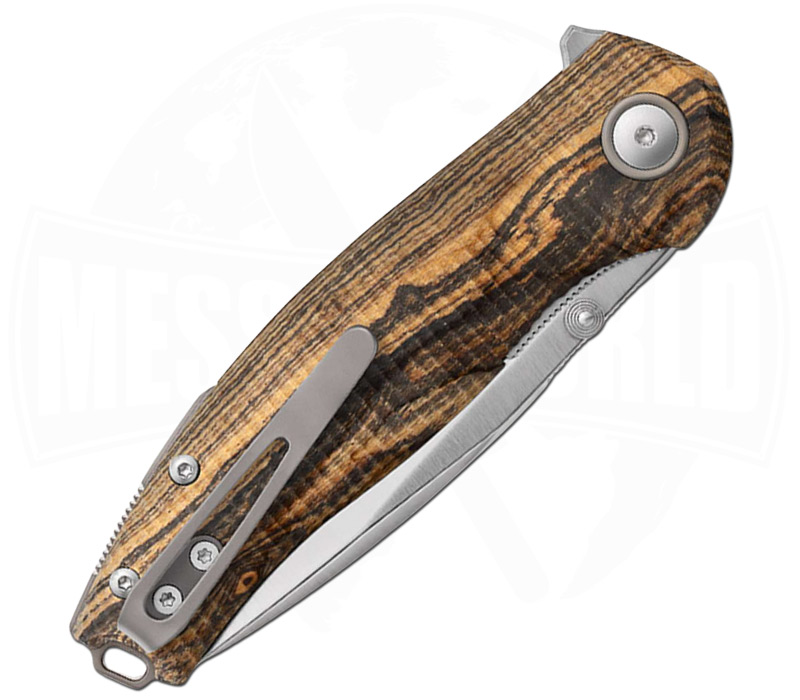 Der Griff aus echtem Bocoteholz vereint natürliche Schönheit mit ergonomischer Form. Jeder Griff ist ein Unikat und liegt dank der durchdachten Konturen angenehm in der Hand, selbst bei längerer Nutzung. Der Backspacer aus Titan setzt nicht nur optische Akzente, sondern sorgt zusätzlich für Stabilität und Langlebigkeit.