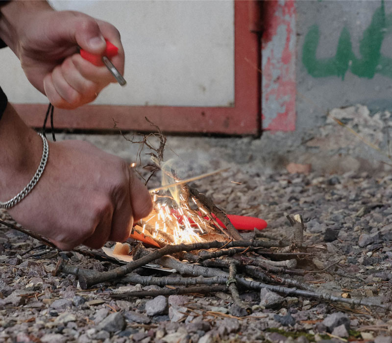 Ein echtes Highlight ist der im Griff integrierte Feuerstahl, der sich leicht entnehmen lässt und dir auch bei widrigen Bedingungen das Entzünden eines Feuers ermöglicht. Der ergonomisch geformte Gummigriff liegt angenehm und sicher in der Hand – selbst bei Nässe, Kälte oder mit Handschuhen. Die auffällige Red / Burnt Orange Farbgebung sorgt dafür, dass das Messer im Gelände schnell wiedergefunden wird.