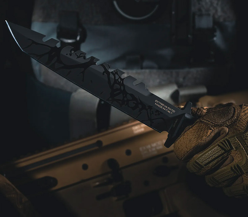 Extrema Ratio knives, military knives, police knives and survival knives not only for professional use - Made in Italy. Extrema Ratio is one of the special knife manufacturers with the latest high-tech manufacturing processes. By consistently maintaining its products at a high level, the company has become known worldwide. Extrema Ratio from Prato, Italy, was founded in 1997 as a handicraft company and has since been producing highly functional, robust knives in cooperation with military units, police and rescue forces. Tactical mission knives for special and rescue units as well as emergency and survival knives and collector's knives were added. For many years, Extrema Ratio has also held a position in the private sector as well as among knife collectors. Quality simply prevails! Quality and functionality as well as handling are still in the foreground today and are adapted to the circumstances and technical requirements. The use of high-quality materials, also from space technology, as well as new production methods, but also the craftsmanship play a major role. Because every blade of an original Extrema Ratio tool is ground and sharpened by hand. Each knife series is tested in various test procedures and achieves top marks with comparable tools. With a knife from Extrema Ratio you acquire a modern, robust tool with many uses, Made in Italy. At MESSERWORLD you always get original Extrema Ratio knives and tools.
