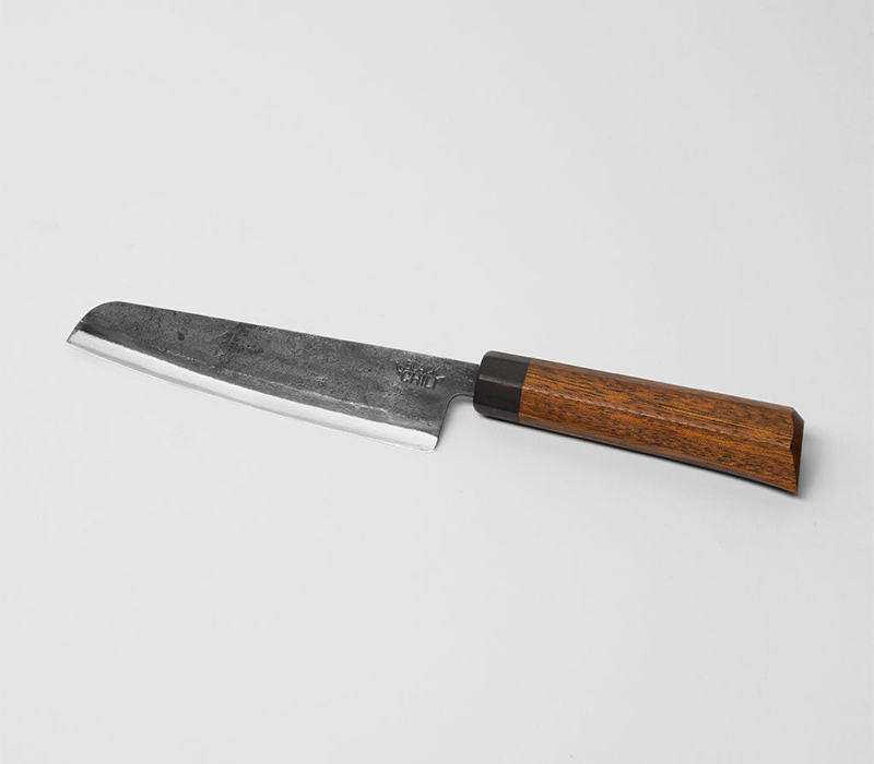 Carbonstahl erfordert sorgfältige Handhabung: Nur von Hand reinigen und sofort abtrocknen. Regelmäßiges Einölen schützt das Holz und erhält die Klinge scharf. Dank der hohen Qualität lässt sich die Klinge leicht nachschärfen – sogar mit einem Porzellanteller oder Keramik-Schärfer.