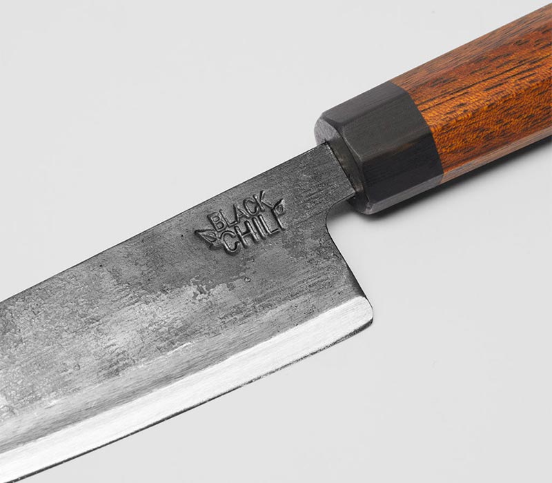 Black Chili setzt auf handgeschmiedeten Carbonstahl, der zwar etwas pflegeaufwendiger ist, als der herkömmliche Edelstahl - dafür aber auch um einiges schärfer. Die Klingen werden in Vietnam handgeschmiedet und auch die Griffstücke werden in aufwendiger Handarbeit gefertigt. Hier erzählt jedes Messer noch seine eigne Geschichte!