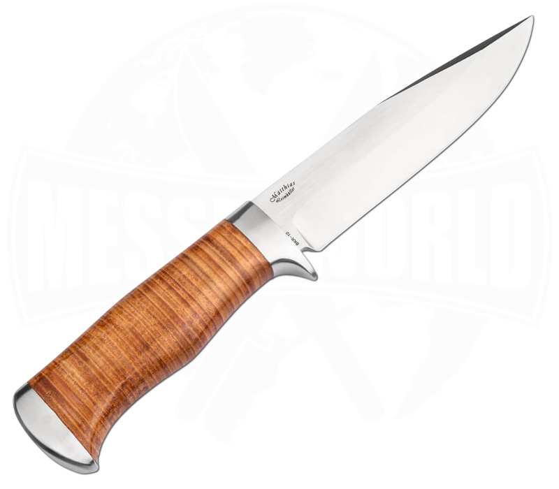 Der ergonomisch geformte Ledergriff liegt sicher und angenehm in der Hand. Auch bei längeren Arbeiten wird Komfort geboten. Das integrierte Parierelement mit Fingerschutz erhöht die Sicherheit, während der harmonisch ausgeprägte Knauf für eine ausgewogene Balance sorgt. Dadurch wird das Magnum Collection 2026 zu einem zuverlässigen Gürtelmesser für Outdoor, Jagd und Bushcraft.
