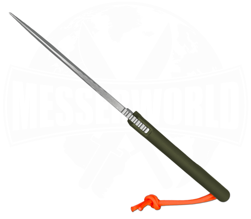 Das gut sichtbare Paracord dient als funktionales Detail. Sollte das Messer im Gelände abgelegt werden, kann es schneller wiedergefunden werden.