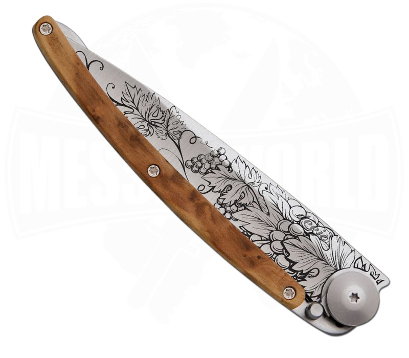 Das Deejo 37g Wacholderholz Grand Cru ist ein Highlight der französischen Taschenmesser‑Designtradition, das ultraleicht, funktional und elegant zugleich ist. Mit einem Gewicht von nur 37 Gramm gehört dieses Modell zu den leichtesten und stilvollsten Everyday Carry (EDC) Messern, die auf dem Markt erhältlich sind.