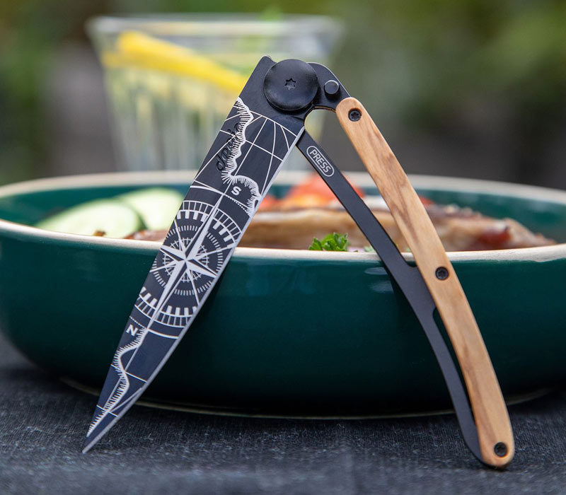 Deejo is a company from France that produces unique knives for everyday use. Thanks to the ultra-light and flat design of the EDC knives, they are easy to carry around and can be stowed in your trouser pocket or jacket. The knives are available in various colours and with many different prints, as well as in different materials such as wood, carbon or polymer. All of them can be operated via a frame lock and can be opened with two hands. The Deejo knives are produced in 3 different sizes: in the small version (15 g/7 cm), in the medium version (27 g/9 cm) or in the large version (37 g/11 cm). The unique designs give the folding knives a unique character and also personalise them. As life-style items, the knives score particularly well in everyday use: whether you want to open a parcel or eat a good steak in a restaurant, the Deejo is always the most stylish option to choose.