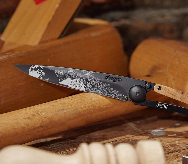 Deejo is a company from France that produces unique knives for everyday use. Thanks to the ultra-light and flat design of the EDC knives, they are easy to carry around and can be stowed in your trouser pocket or jacket. The knives are available in various colours and with many different prints, as well as in different materials such as wood, carbon or polymer. All of them can be operated via a frame lock and can be opened with two hands. The Deejo knives are produced in 3 different sizes: in the small version (15 g/7 cm), in the medium version (27 g/9 cm) or in the large version (37 g/11 cm). The unique designs give the folding knives a unique character and also personalise them. As life-style items, the knives score particularly well in everyday use: whether you want to open a parcel or eat a good steak in a restaurant, the Deejo is always the most stylish option to choose.