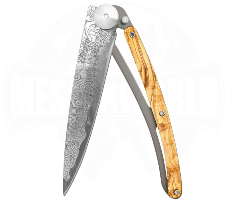 Deejo Damas 88 Olivenholz – ultraleichtes Taschenmesser mit Damaszenerstahl & edlem Holzgriff