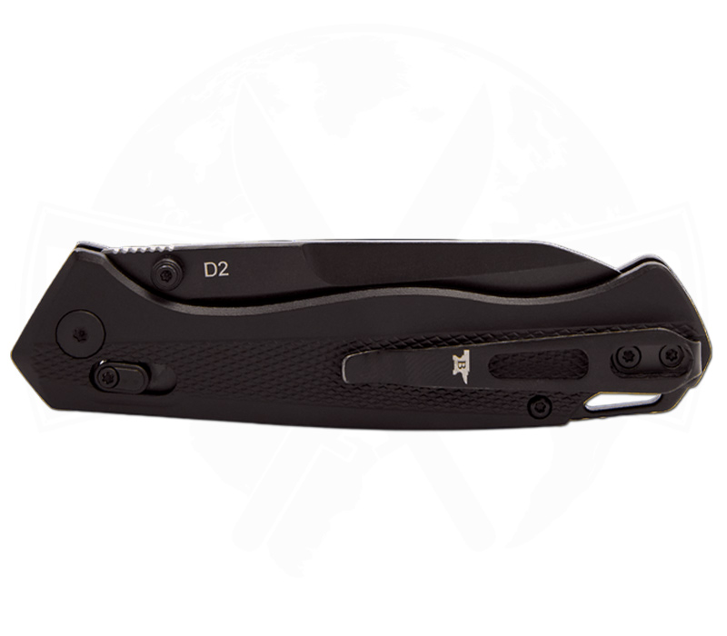 Die 8,6 cm lange Reverse-Tanto-Klinge aus D2 Stahl sorgt für starke Schneidleistung und hohe Schnitthaltigkeit. Gleichzeitig wird durch die schwarze Klingenbeschichtung eine widerstandsfähige Oberfläche geboten, die das Messer optimal für den Alltag und Outdoor-Einsatz macht.