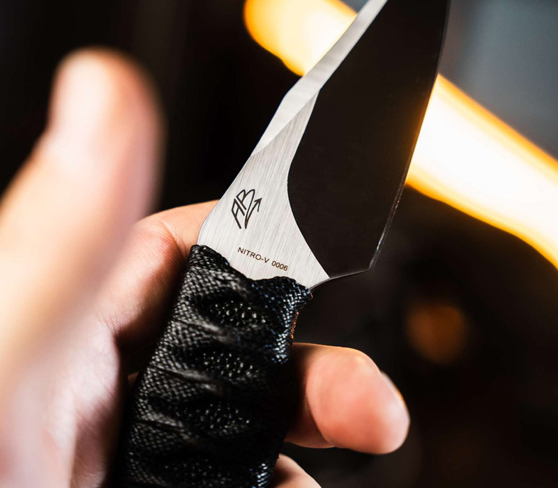 - Nitro-V Stahl: Hochwertiger Pulverstahl für extreme Schnitthaltigkeit