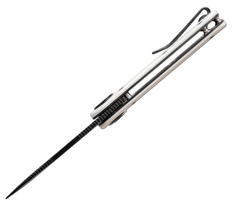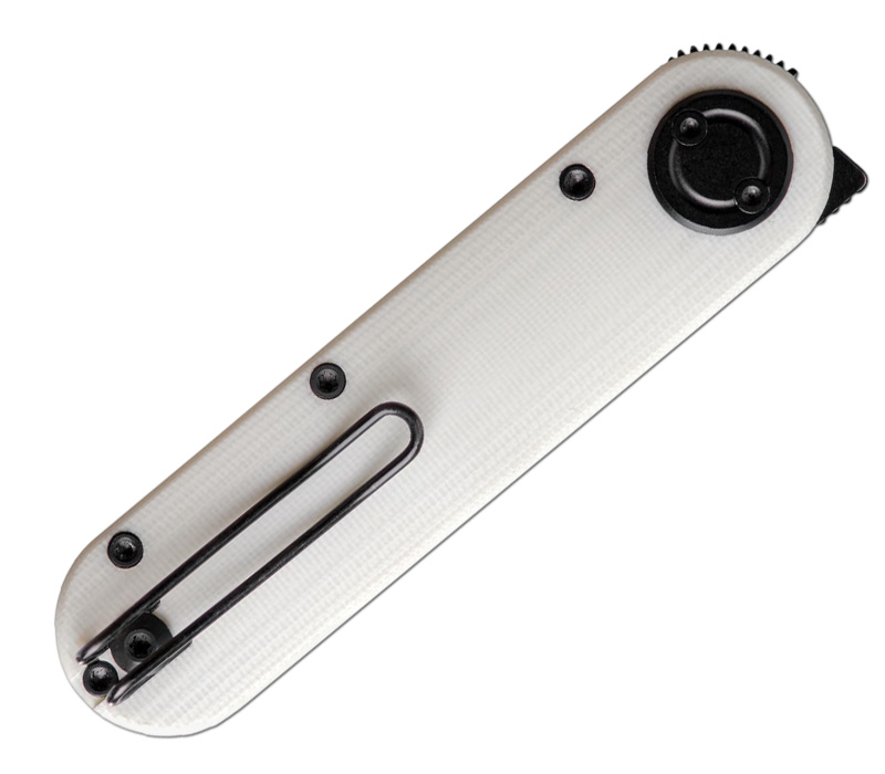 Der weiße G10 Griff sorgt für einen cleanen, modernen Look und hebt sich deutlich von der Masse ab. Gleichzeitig wird durch das strukturierte Material ein sicherer Halt geboten, wodurch präzises Arbeiten unterstützt wird.