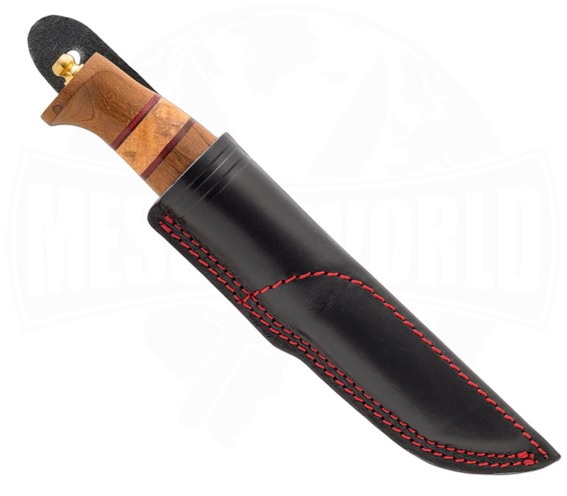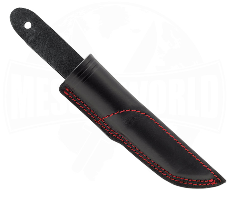 Die hochwertige Lederscheide mit roter Naht greift das Rubin-Thema auf und sorgt gleichzeitig für sicheren Transport. Dabei wird das Messer stilvoll und griffbereit am Gürtel getragen.