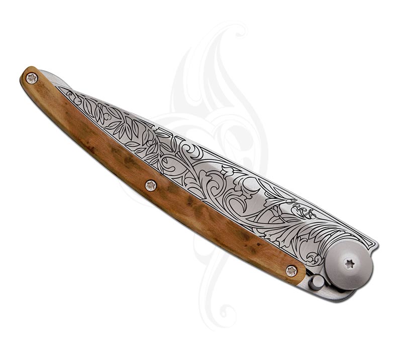 Das Deejo 37g Art Nouveau Wacholderholz vereint französisches Designhandwerk, ultraleichte Funktionalität und künstlerische Raffinesse in einem außergewöhnlichen Taschenmesser. Mit nur 37 Gramm ist dieses Modell besonders alltagstauglich, ohne an Eleganz und Stil einzubüßen.